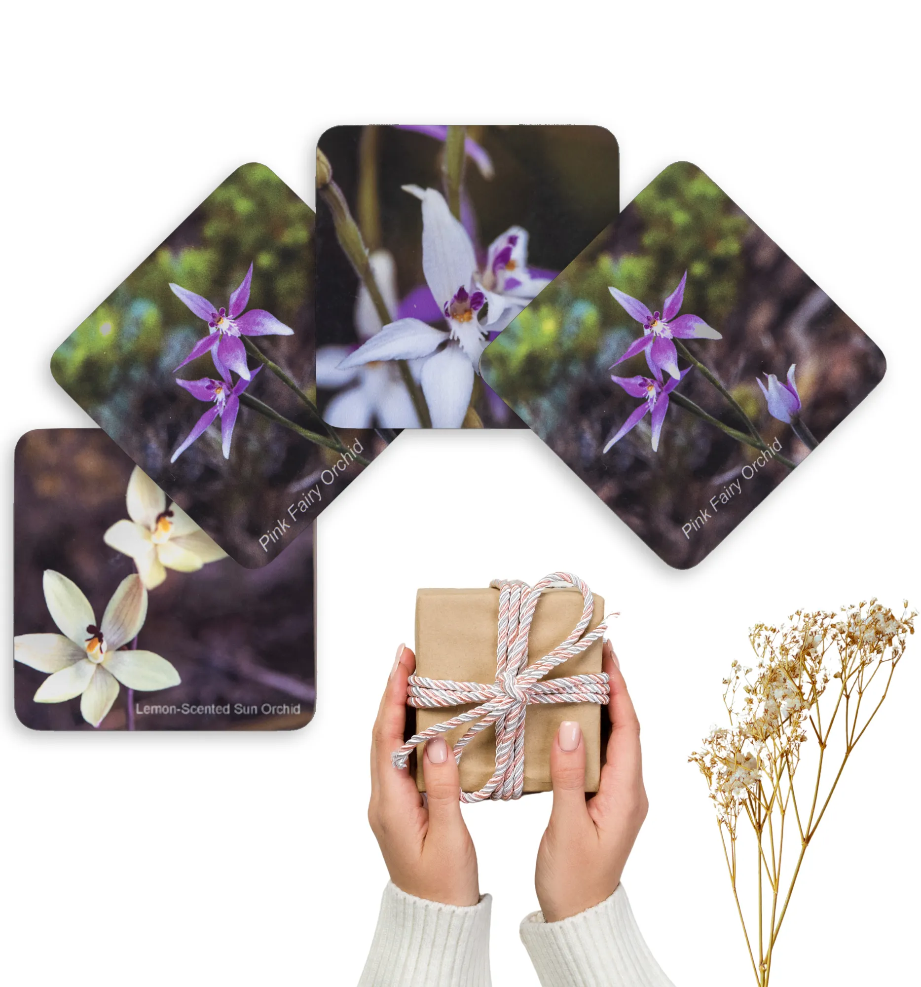 Experience the exquisite allure of wildflower orchids from West Australia with those dear to you. Whether marking a momentous occasion or a simple yet heartfelt gesture of care, our orchid coasters stand as the impeccable selection.